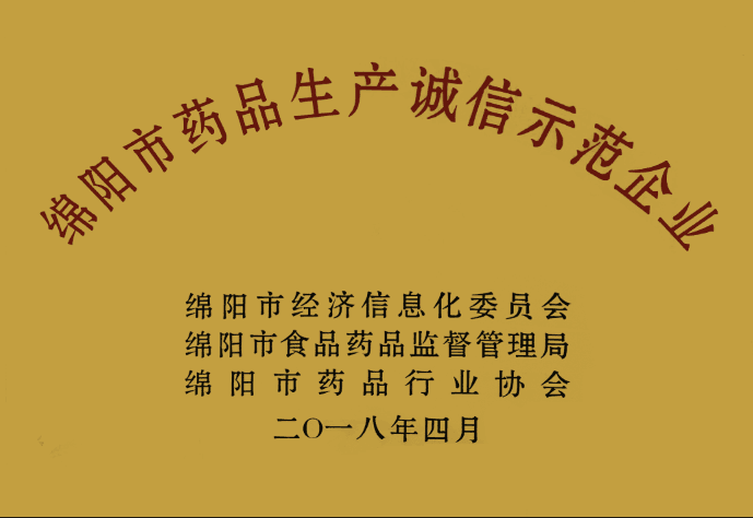 2018年5月24日,在绵阳市科伦药业召开了“药品生产诚信示范企业”表彰大会,我公司喜获殊荣。...